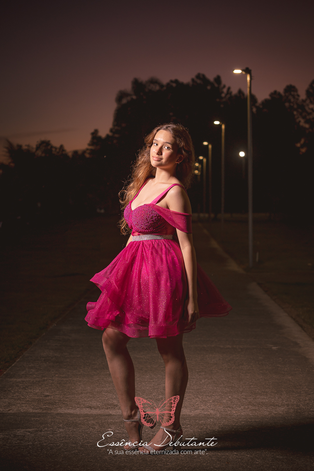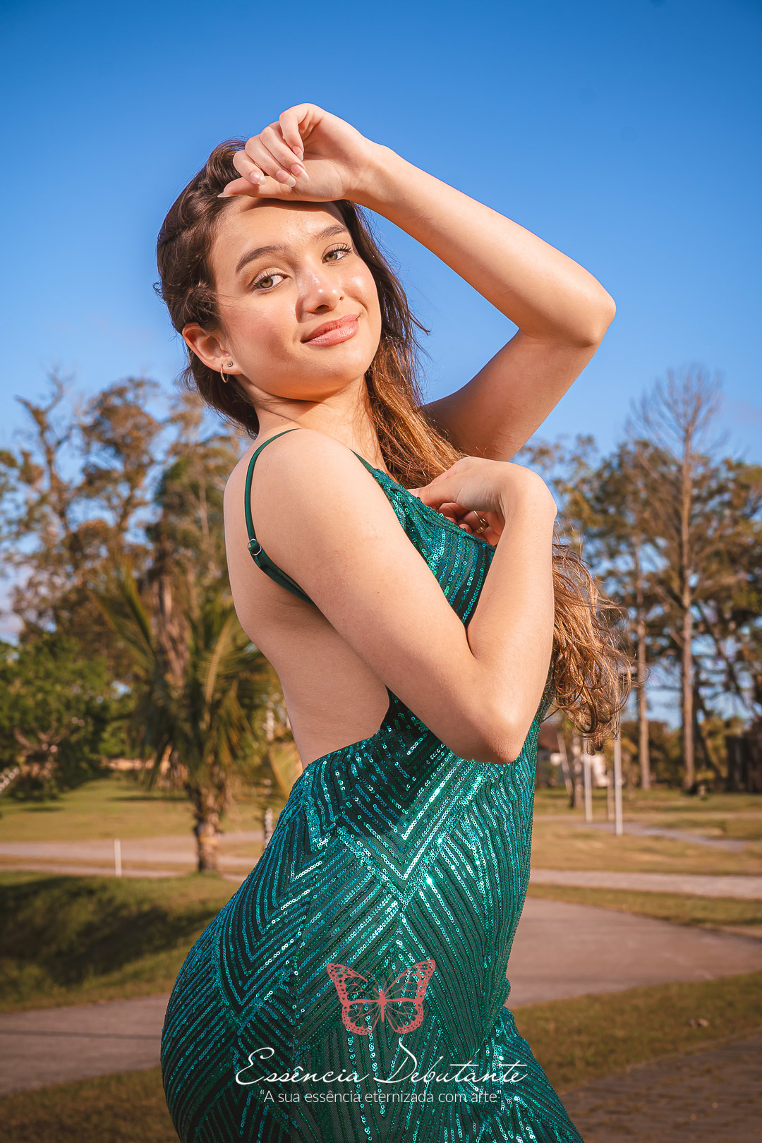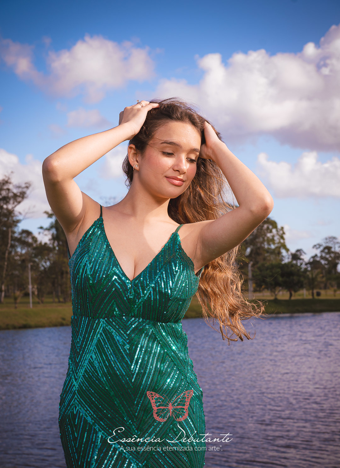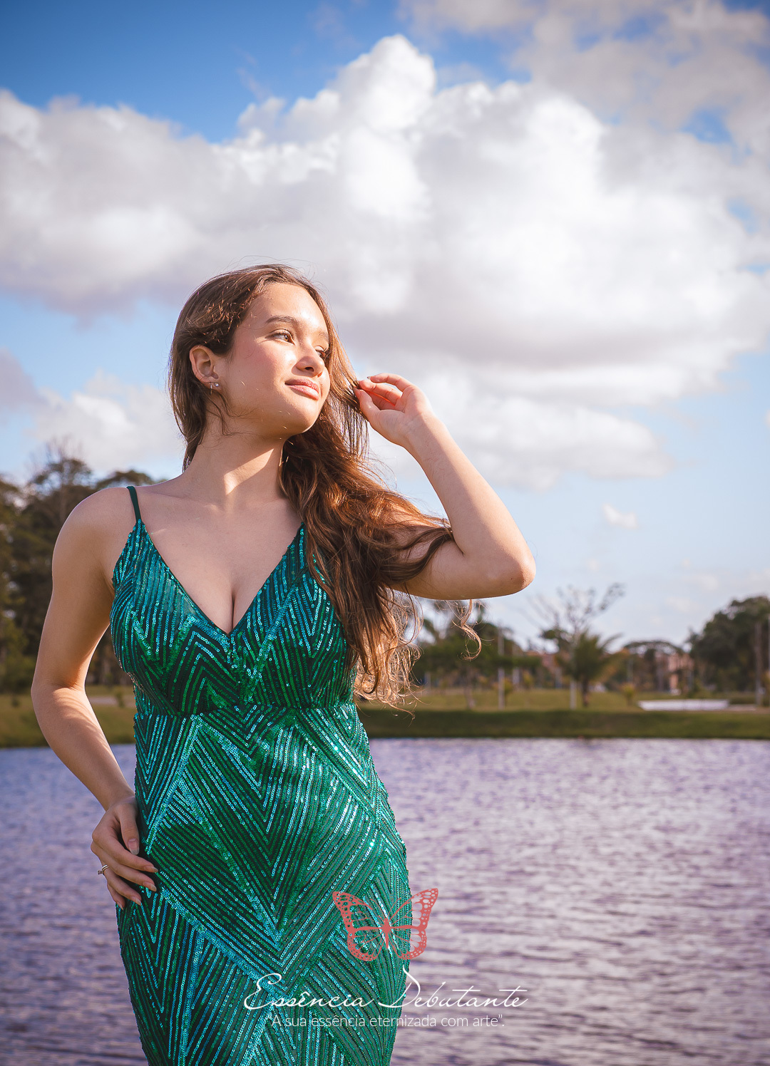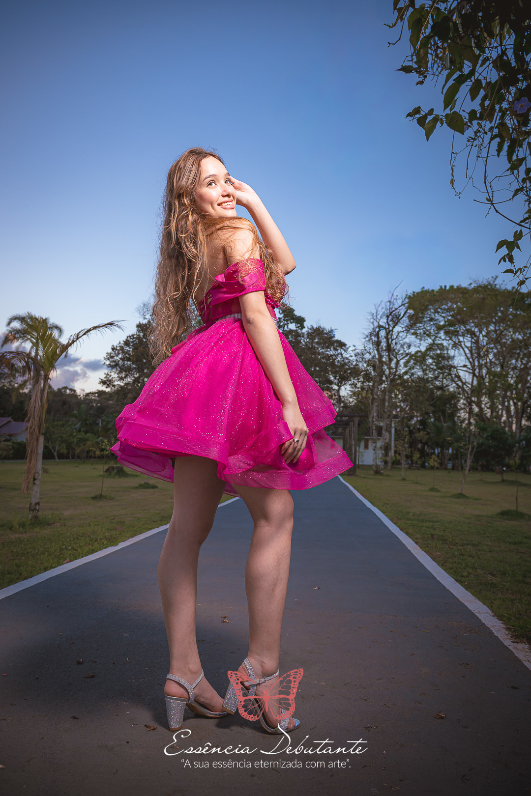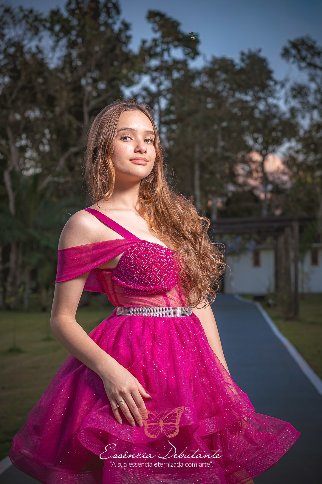 Entre o brilho do vestido e o dourado do entardecer, cada clique revela mais do que uma imagem — revela um sentimento.