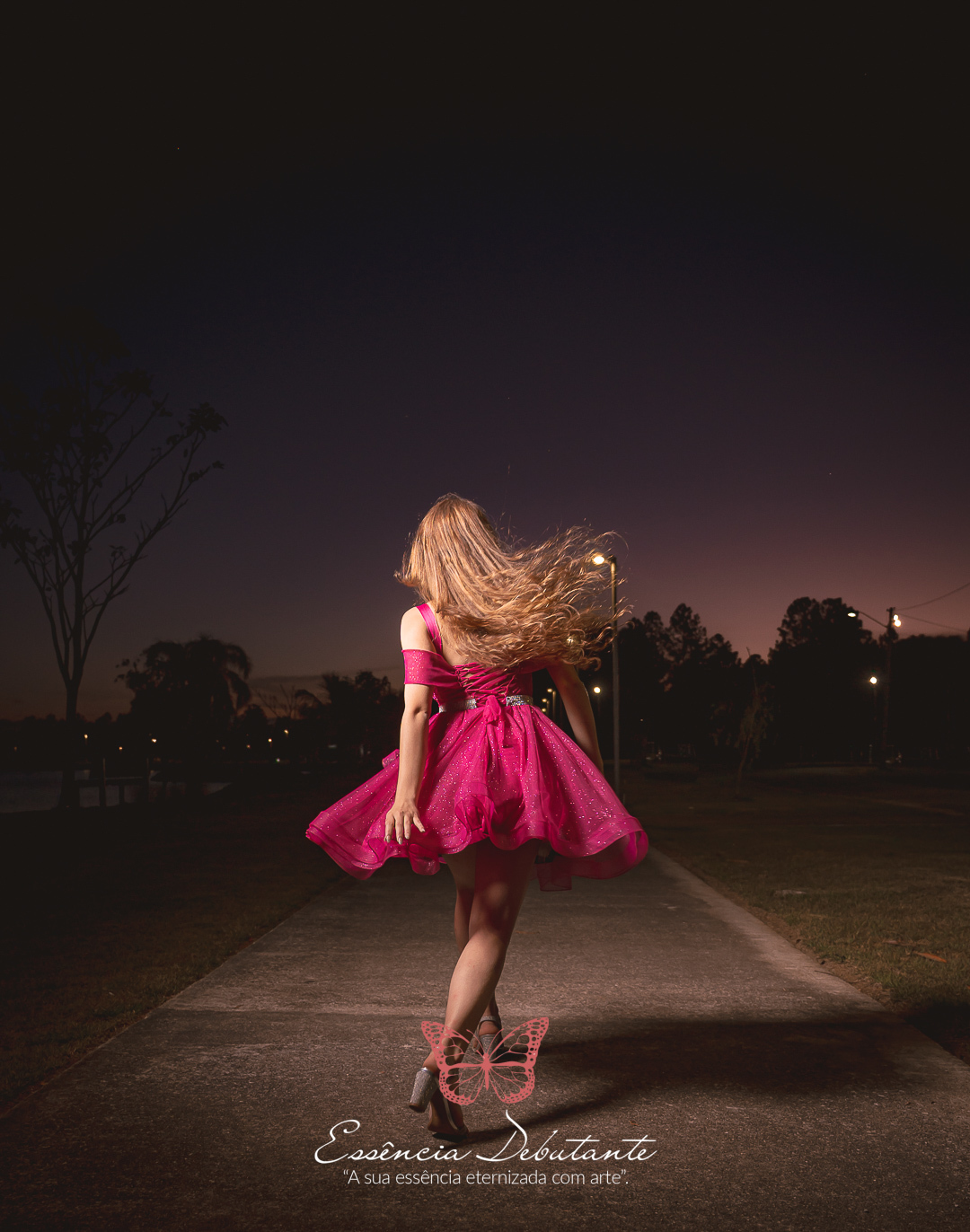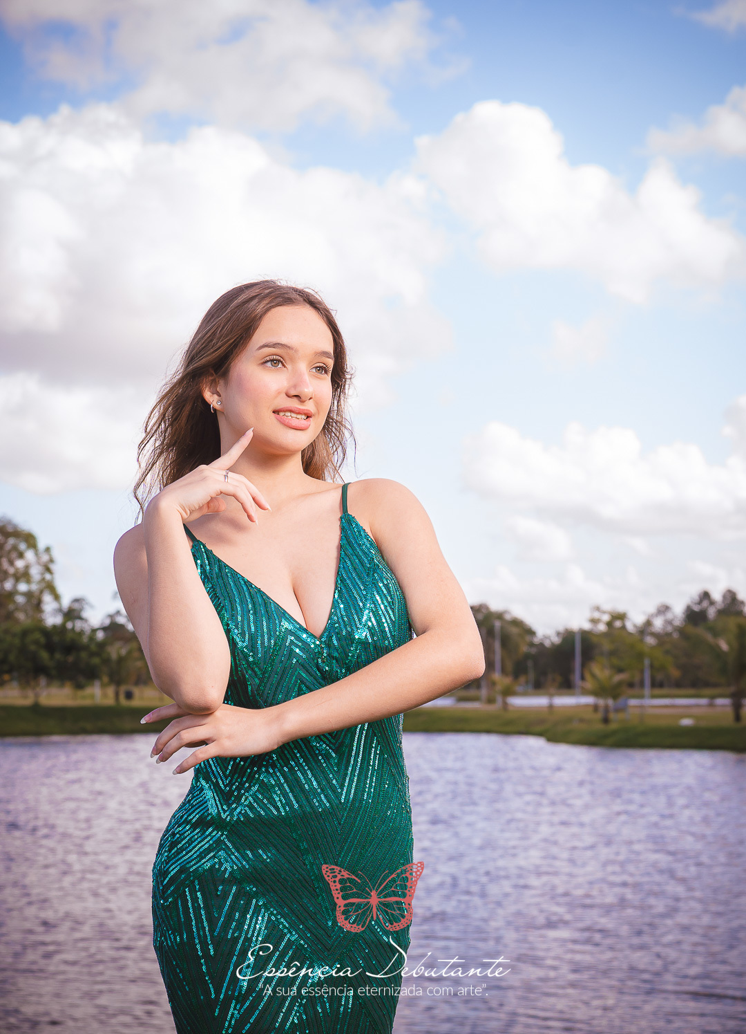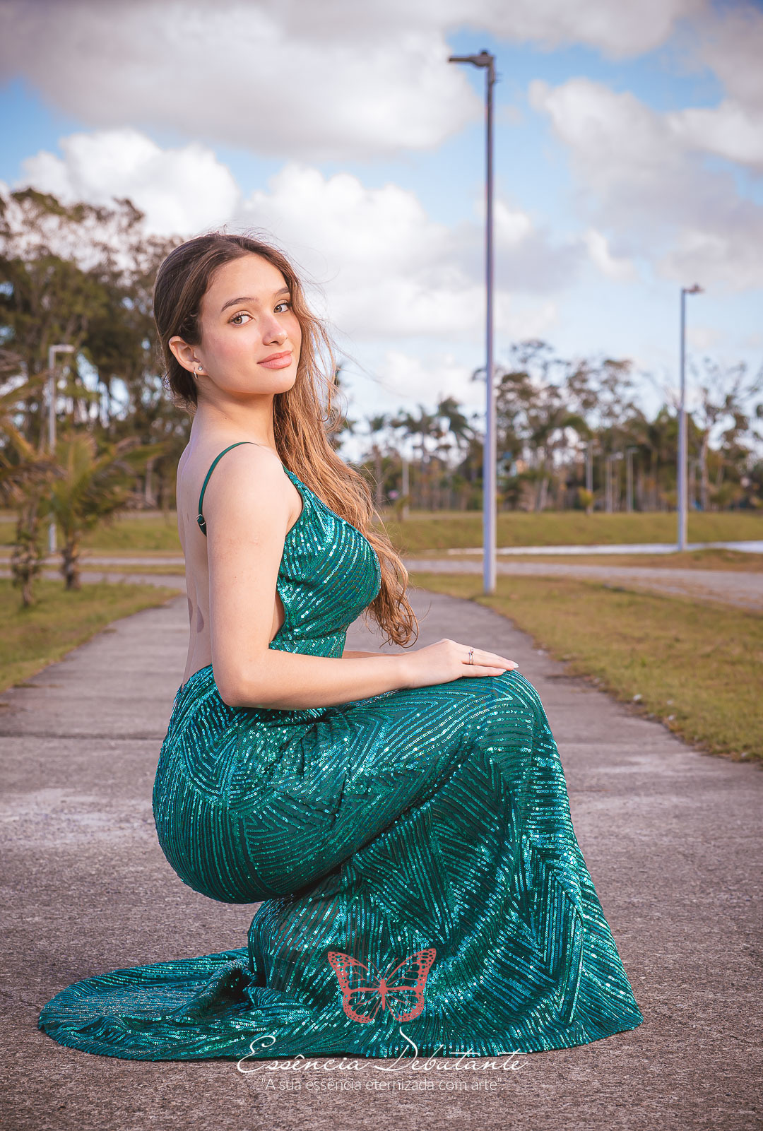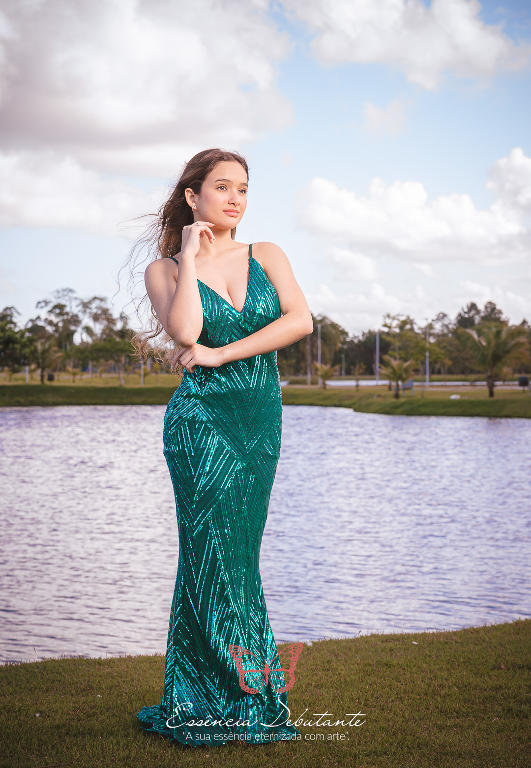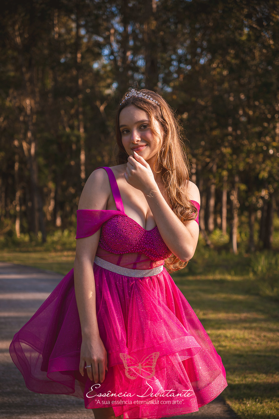 Entre o brilho do vestido e o dourado do entardecer, cada clique revela mais do que uma imagem — revela um sentimento.