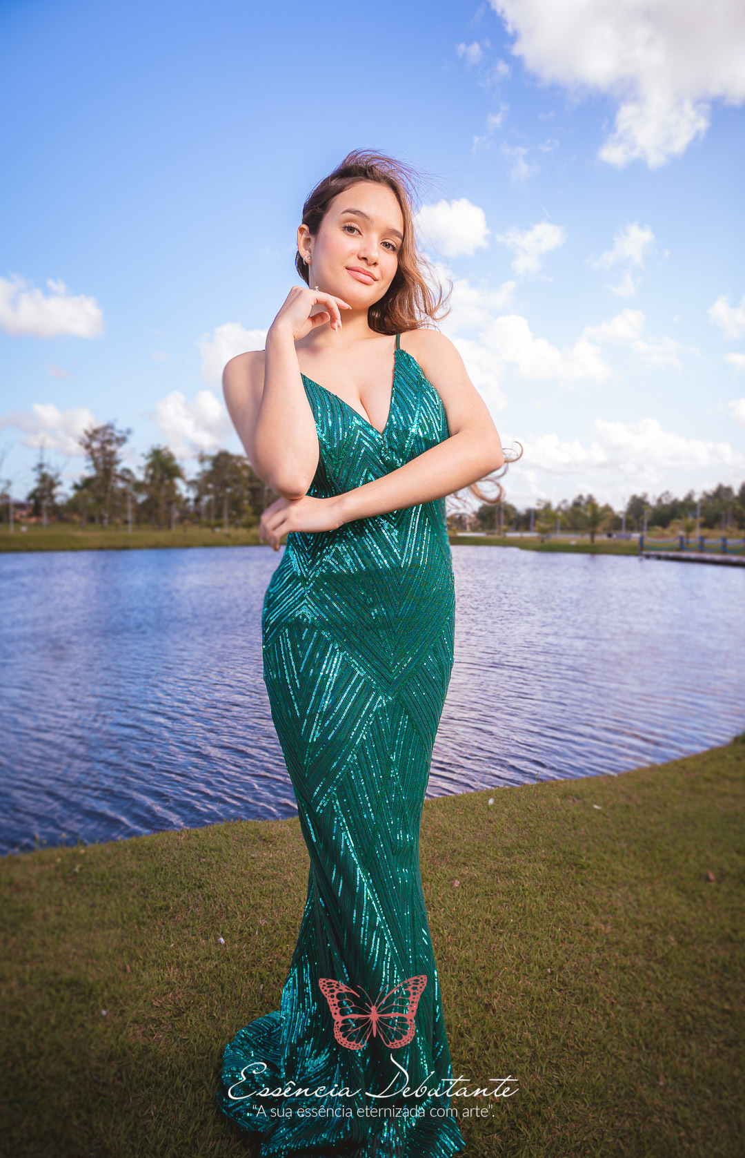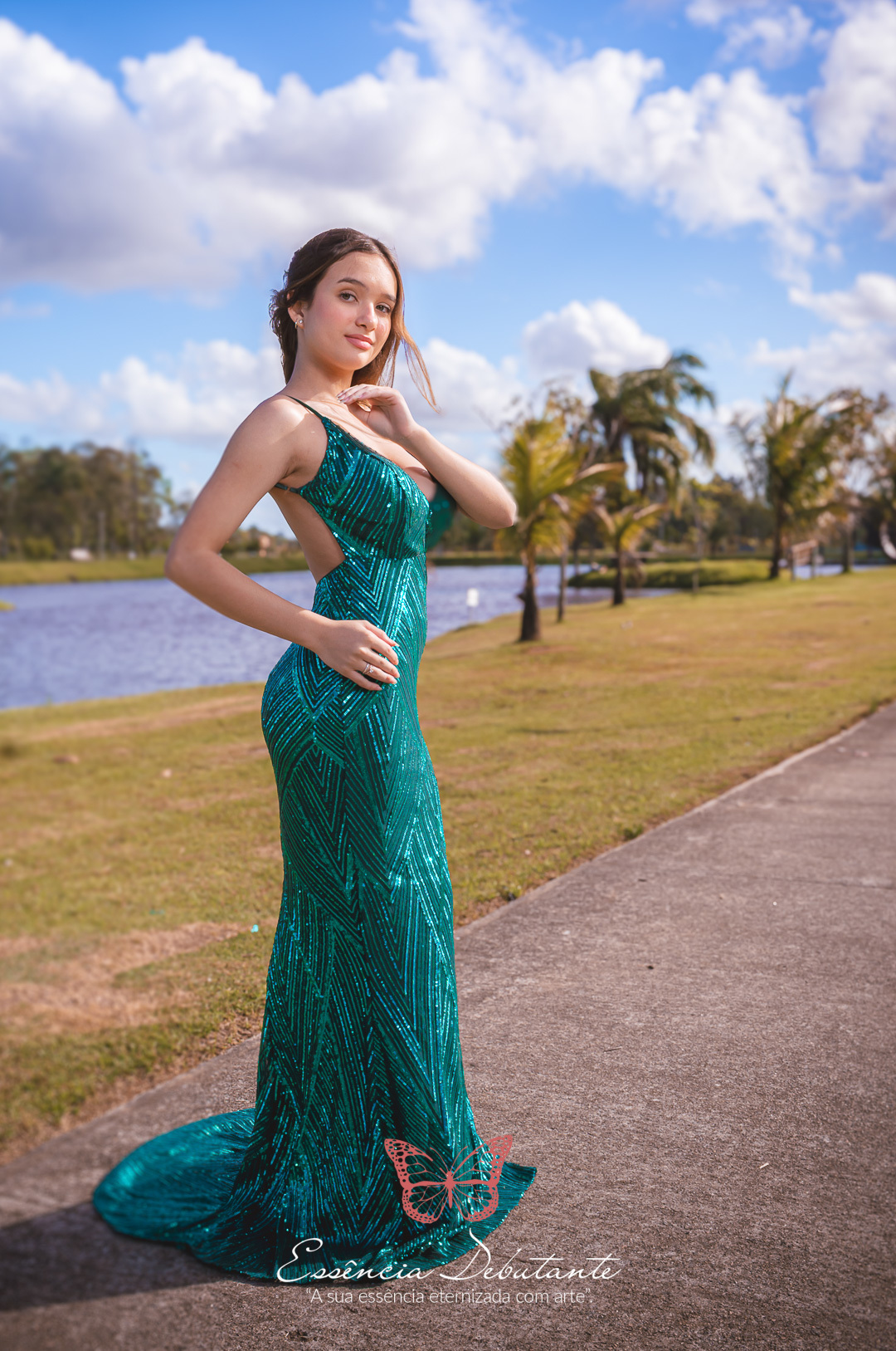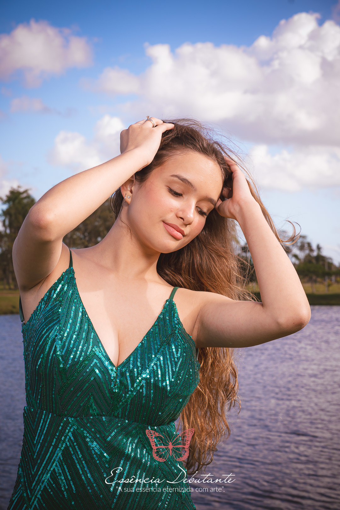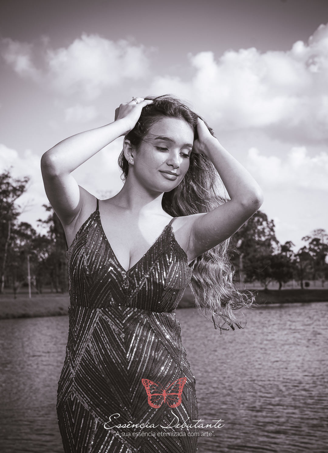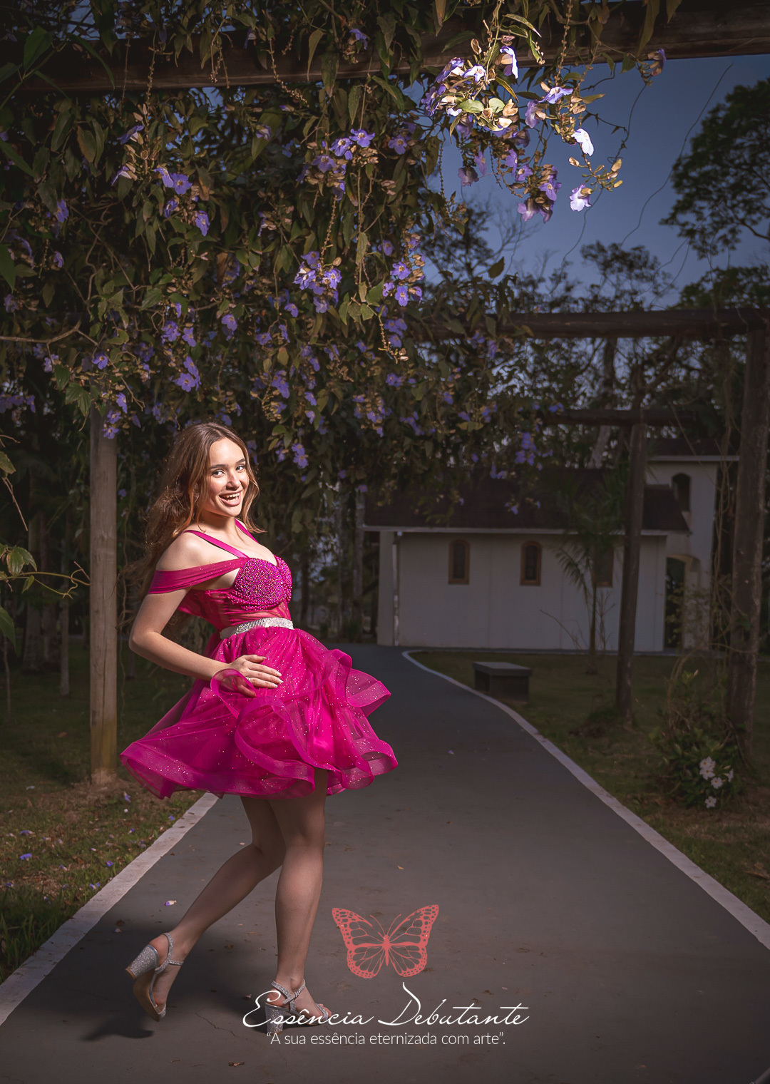 Entre o brilho do vestido e o dourado do entardecer, cada clique revela mais do que uma imagem — revela um sentimento.