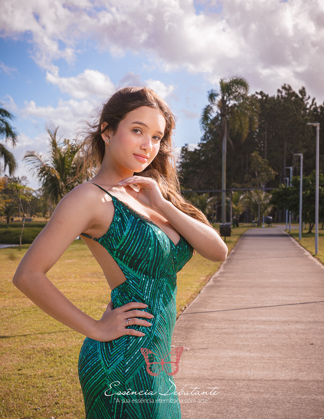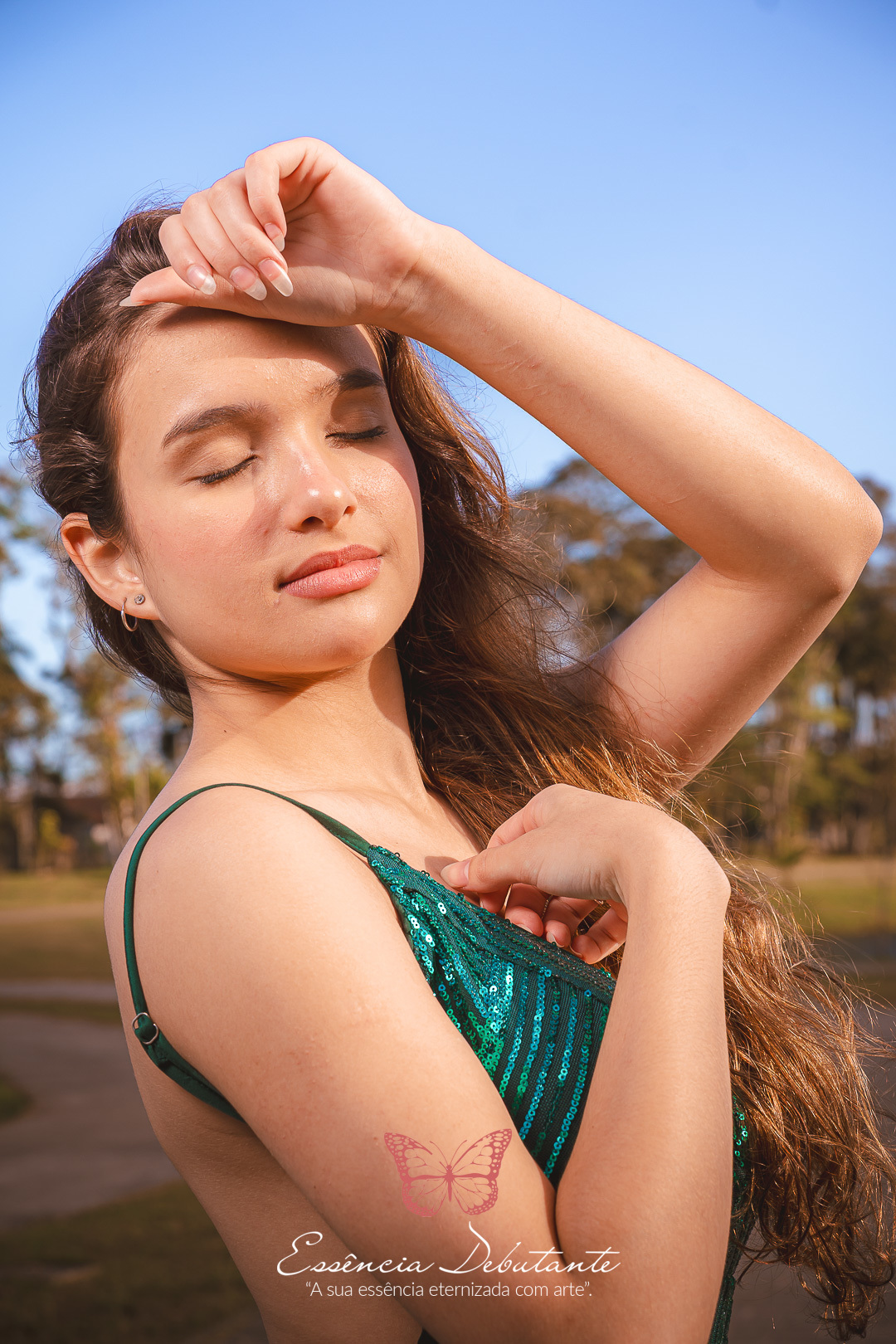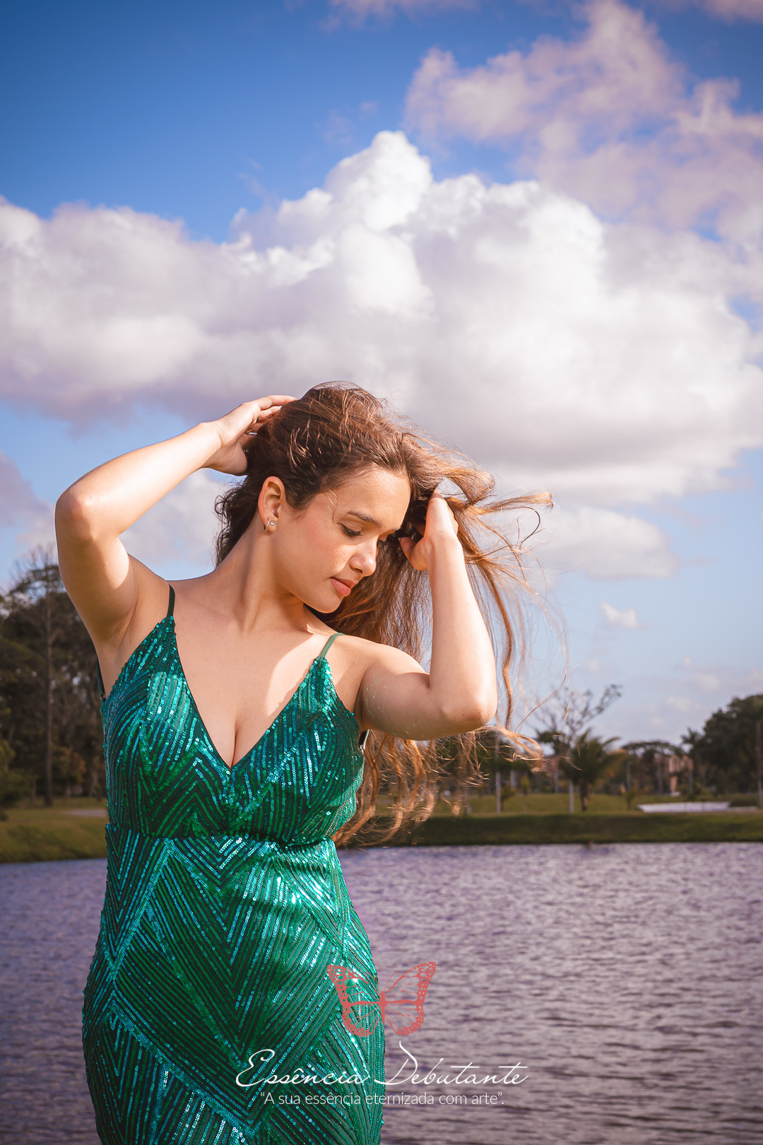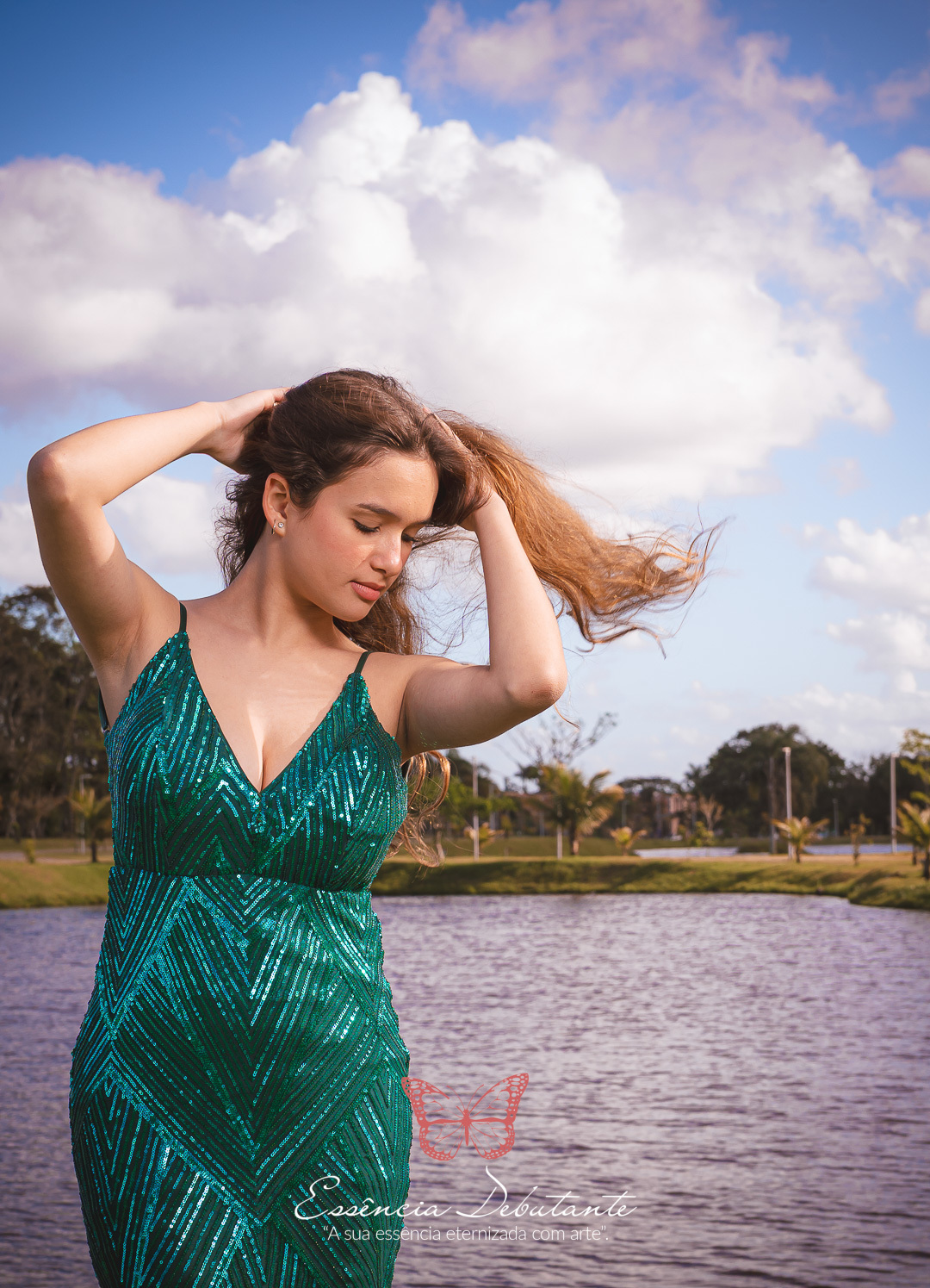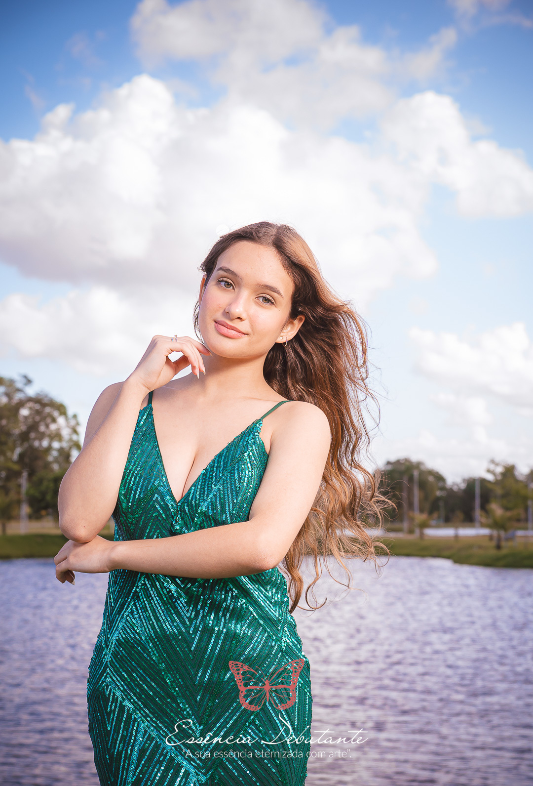 Entre o brilho do vestido e o dourado do entardecer, cada clique revela mais do que uma imagem — revela um sentimento.