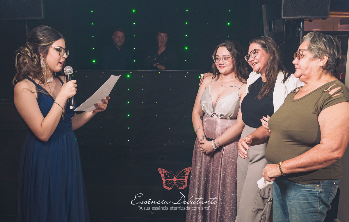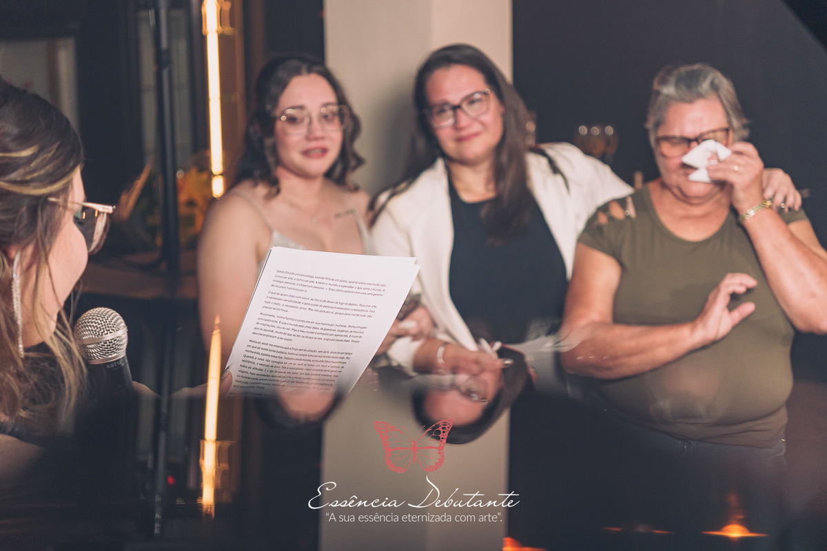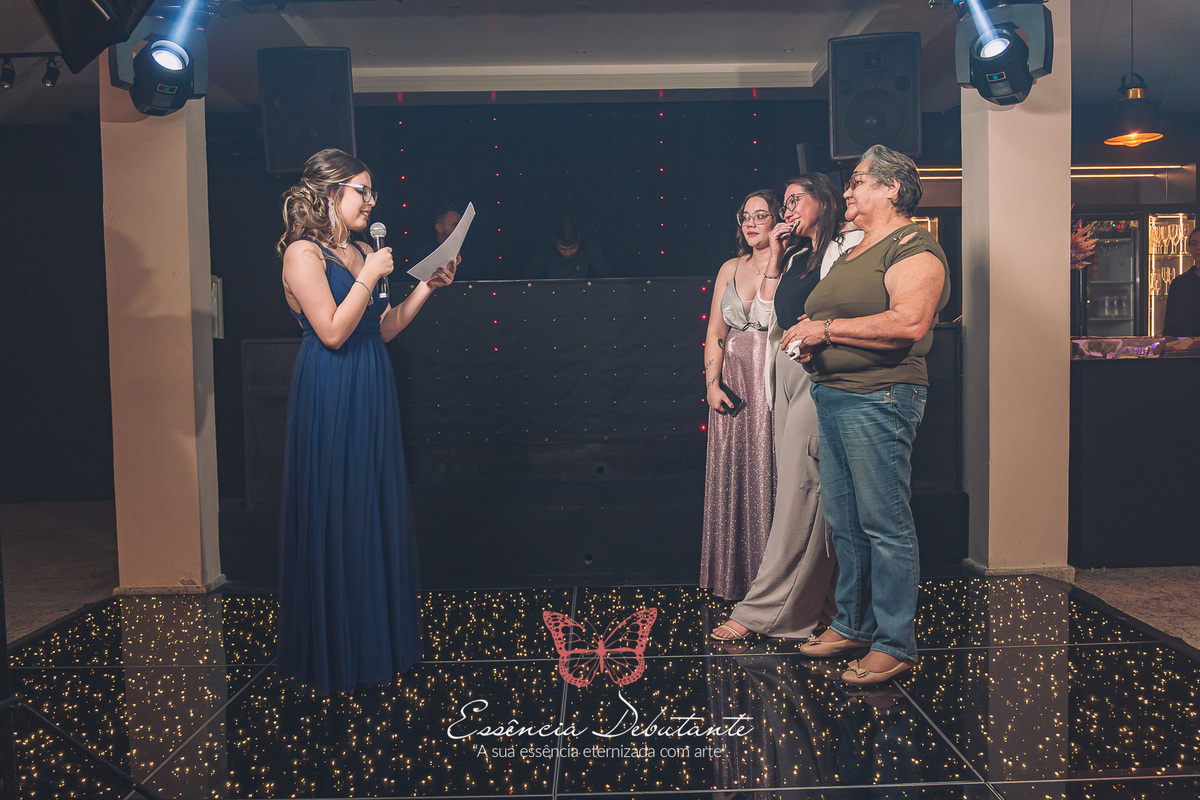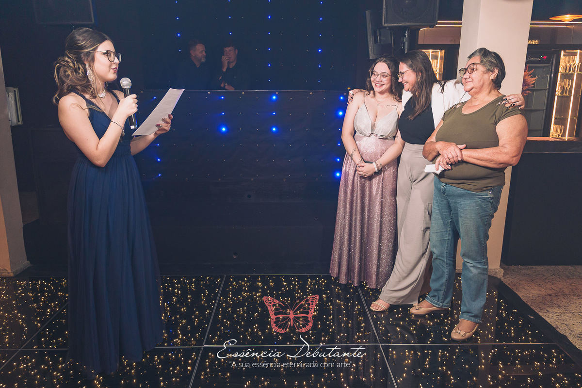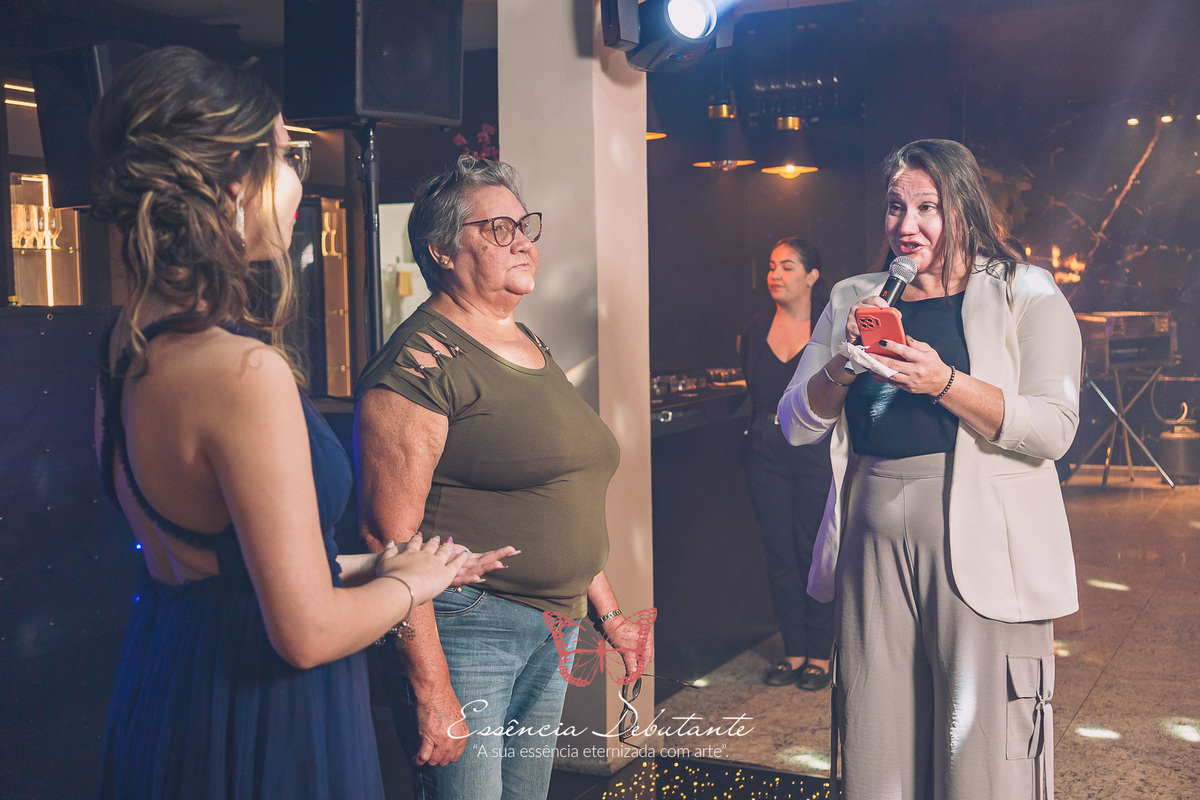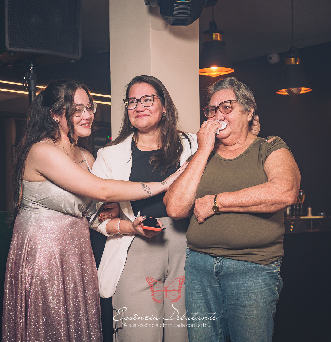 Cada detalhe refletia o poder de uma nova fase, a confiança de quem aprendeu a se amar e a leveza de quem sabe que a vida é feita para ser vivida com intensidade. Entre risadas, abraços e olhares cheios de carinho, nasceu um momento inesquecível — uma noite que misturou a doçura de uma debutante com a força de uma mulher pronta para o mundo.